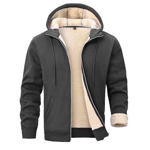 PrimeCrest Sweat a Capuche Homme Veste Hiver Zippé Blouson Polaire Sweatshirts Chaude Sherpa Thermique Travail Sweat-Shirt Doublée Casual Manteau avec Poches Hoodies Mens Jacket Gris 3XL