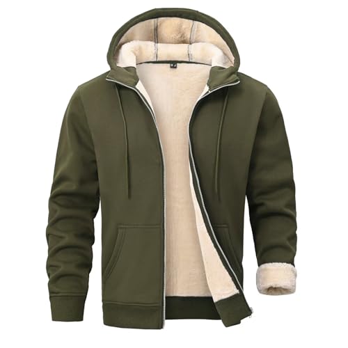 PrimeCrest Sweat a Capuche Homme Veste Hiver Zippé Blouson Polaire Sweatshirts Chaude Sherpa Thermique Travail Sweat-Shirt Doublée Casual Manteau avec Poches Hoodies Mens Jacket Vert 3XL