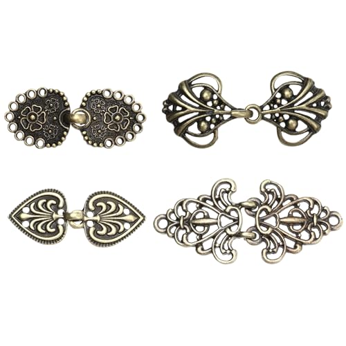 Veemoon 4 Pièces Boucles de Cape Vintage en Alliage de Fer et Zinc, Attaches Rétro pour Capes, Manteaux et Écharpes, Clips Décoratifs Multifonctions pour Accessoires Femme Hiver,