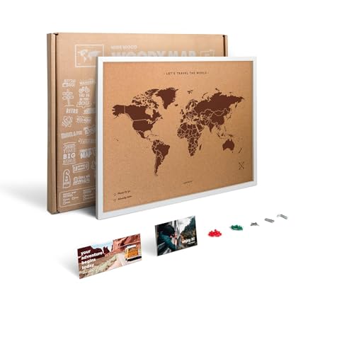 Miss Wood My World L Panneau d'affichage en liège avec cadre, motif mappemonde, bois, marron et blanc, 48 x 63 x 1,5 cm