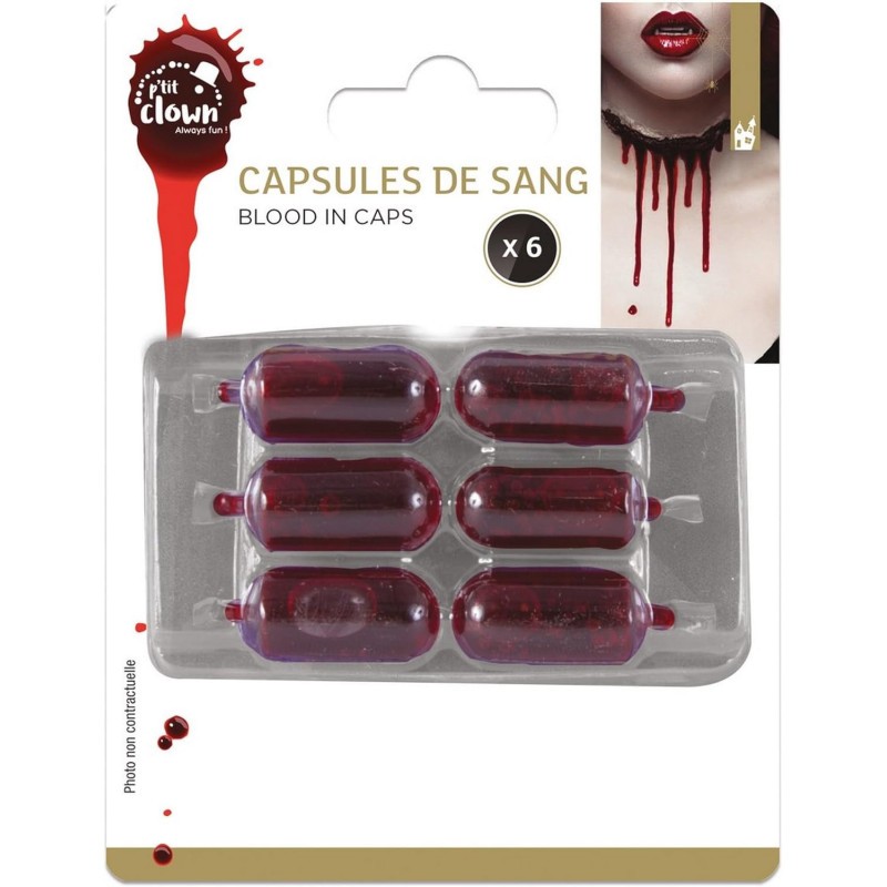Faux sang - Maquillage - 6 capsules - Déguisement - Halloween - Carnaval