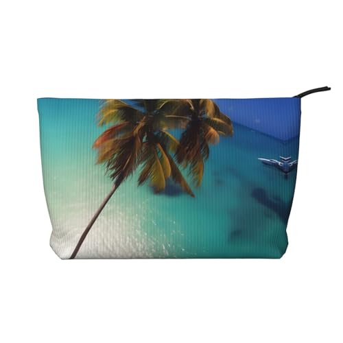 JKLQWC Trousse à crayons triangulaire avec fermeture éclair - Organiseur en cuir léger pour l'école, le bureau, les voyages, le maquillage, Coco Palm Beach Sandy, Taille unique, Cartable