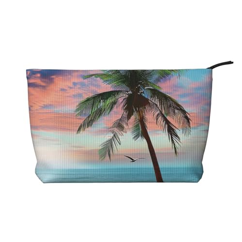 Trousse de maquillage transparente avec fermeture éclair en forme d'arbre de noix de coco et coucher de soleil pour la plage