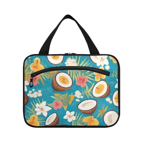 Yoogain Tropical Summer Coconuts Trousse de maquillage de voyage à suspendre pour femme avec crochet, trousse de toilette tendance pour accessoires pour femme bolsa para maquillaje L, noix de coco