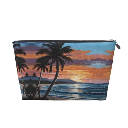 Trousse de Maquillage de Voyage Portable à imprimé hamac et Coucher de Soleil sur la Plage de Noix de Coco, Trousse de Maquillage Polyvalente à Fermeture éclair, Grande capacité