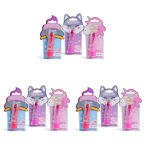 MARTINELIA - Rouge à Lèvres Pour Enfant – Maquillage Enfant Aromatisé - Non Toxique – Modèle Aléatoire (Pastèque, Cerise, Fraise) - 1 Unité (Lot de 3)