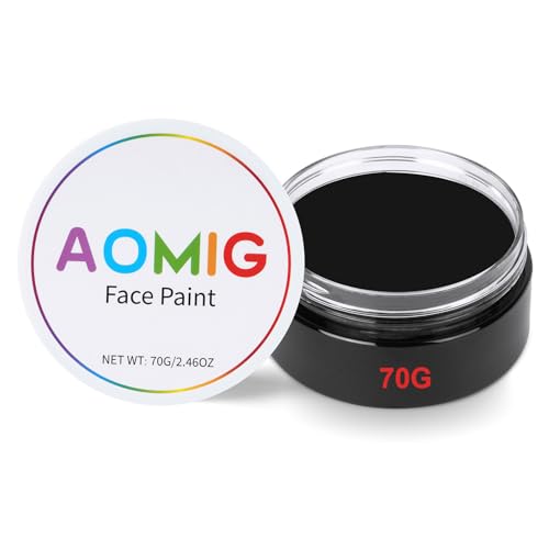 Aomig Peinture Corporelle 70g, Peinture Visage, Imperméable, Non Toxique, Maquillage Enfant pour Carnaval, Halloween, Scène, Clown(Noir)