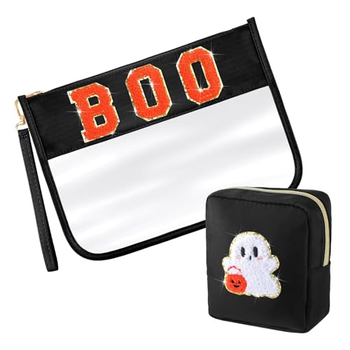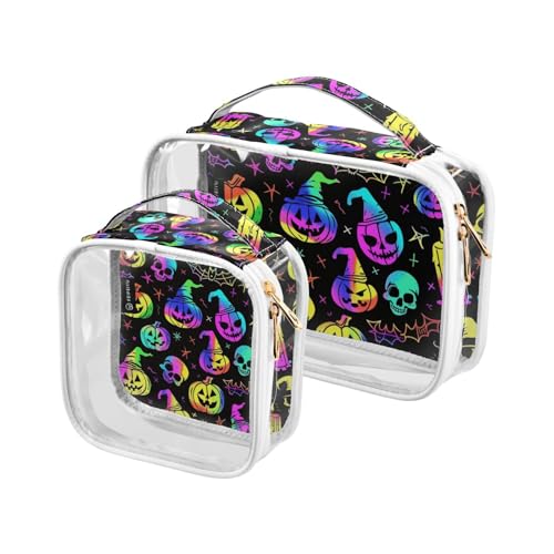 Amooorous Lot de 2 petites trousses de maquillage transparentes décoratives pour homme - Approuvées par la TSA - Résistantes à l'eau - Conforme aux normes de l'aéroport, Joyeux Halloween dessin animé