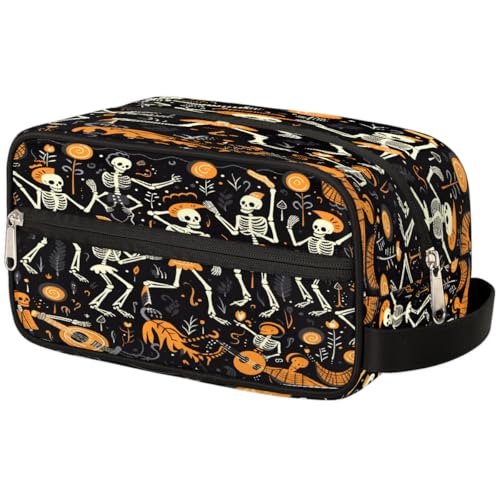 VQUVQV Trousse de toilette de voyage, trousse de toilette de douche, de salle de bain, trousse de maquillage avec poignée pour homme et femme, Squelette dansant mexicain amusant Halloween