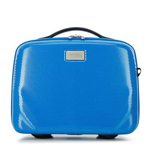 WITTCHEN PC Ultra Light Trousse de Maquillage Mallette cosmétique Trousse de Toilette Mallette de beauté en Polycarbonate Poignée Bande élastique pour bandoulière Taille XS Bleu