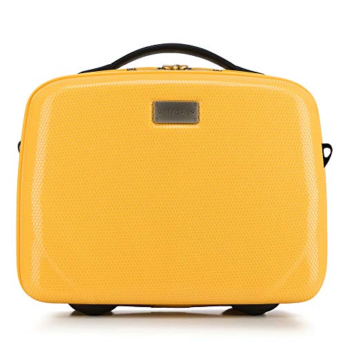 WITTCHEN PC Ultra Light Trousse de Maquillage Mallette cosmétique Trousse de Toilette Mallette de beauté en Polycarbonate Poignée Bande élastique pour bandoulière Taille XS Jaune