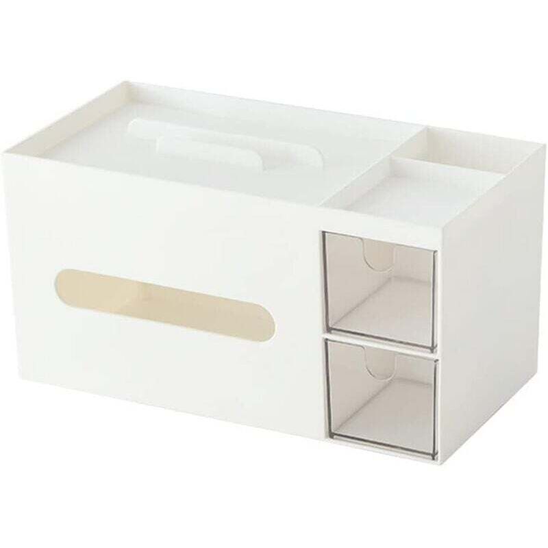 Boîte Rangement Maquillage Avec 2 Tiroirs, Plastique Organisateur Maquillage Boîte à Mouchoirs Salle de Bain Make Up Organiser pour Cosmetique
