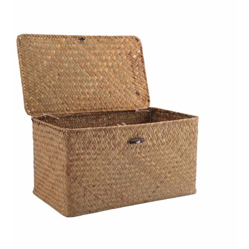 Panier de Rangement Tissé une la Main en Paille avec Couvercle BoîTe pour Organisateur Maquillage Paniers Linge Seagrass Rotin (M)