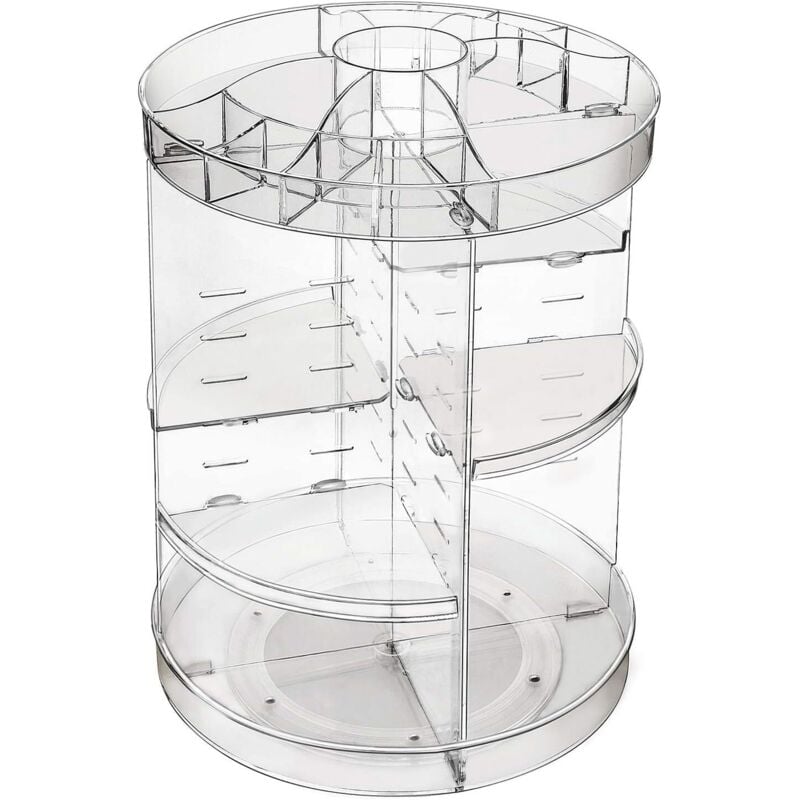 Cozary Organisateur Maquillage Rotatif 360°, Rangement Maquillage Transparent 3 Niveaux Réglables, Organisateur Coiffeuse, Stockage Boîte Cosmétique Multifonctionnel, Présentoir Cosmétique