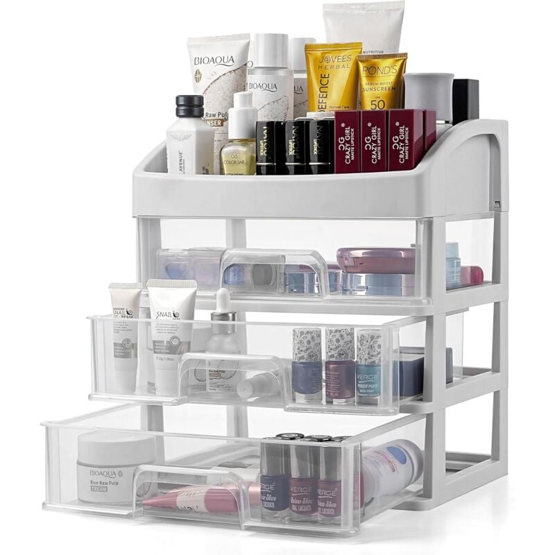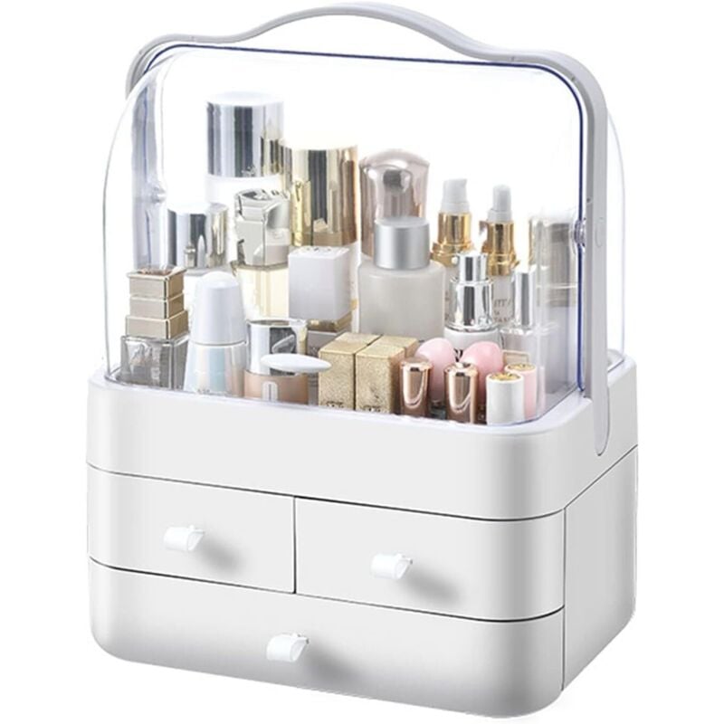 Rangement Maquillage, étanche à l'eau et à la poussière rangement coiffeuse organisateur maquillage avec 3 tiroirs convient pour le meuble de bain,