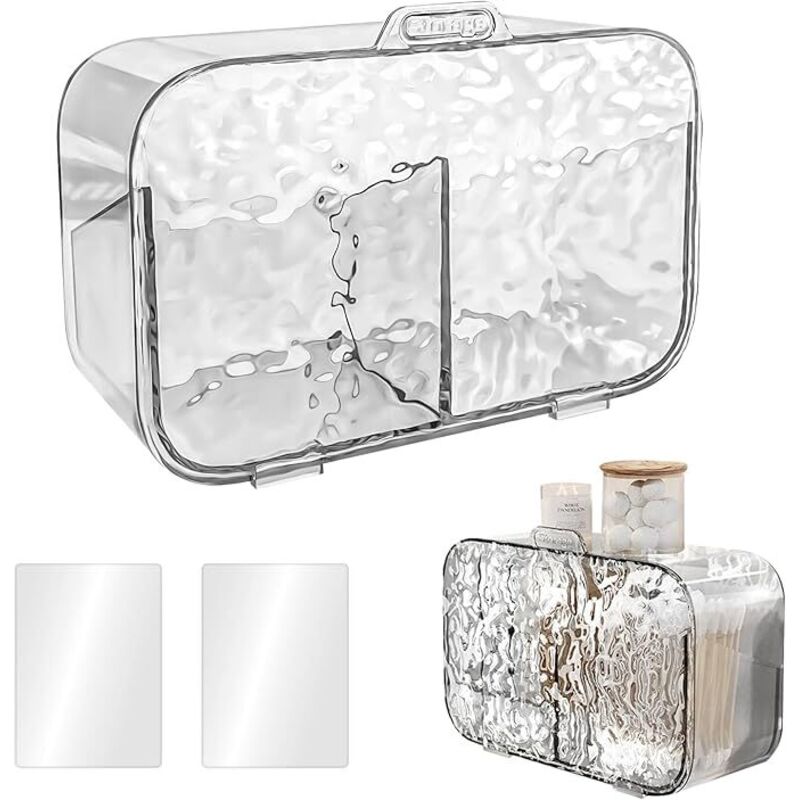Organisateur Salle de Bain, Rangement Maquillage, Boite Coton Tige Transparent, Organisateur Maquillage Mural, Boite Rangement avec Couvercle avec 2