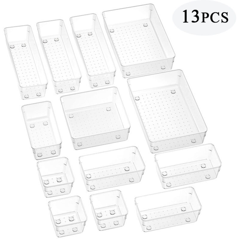Organisateur Maquillage Lot de 13, Plateaux de Rangement Plastique Boîte Stockage, Organiseurs de Tiroir pour Cosmétiques, Bureau, Cuisine