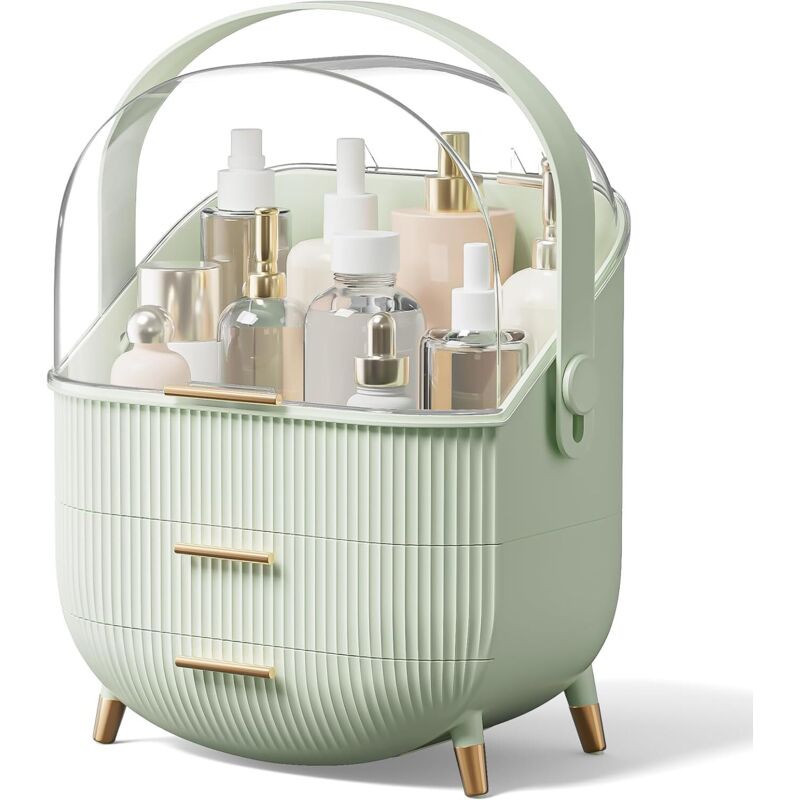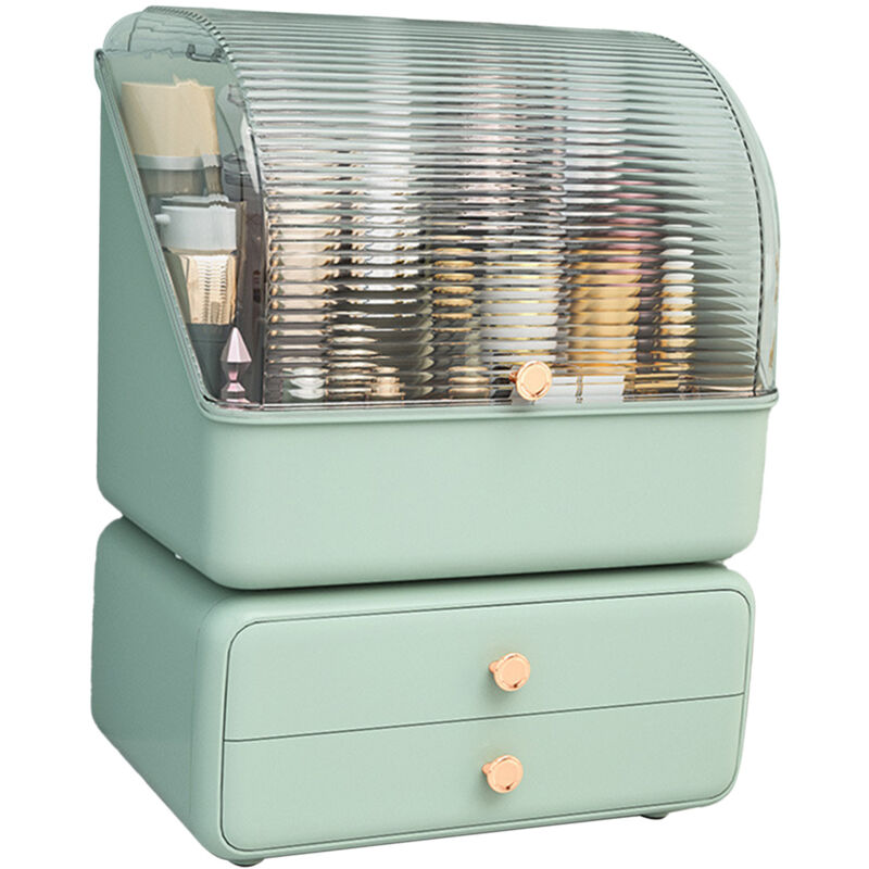 Boîte de Rangement Cosmétique de Bureau avec Tiroirs, Organisateur Maquillage Anti-Poussière Vert Clair pour Bijoux et Produits de Soin