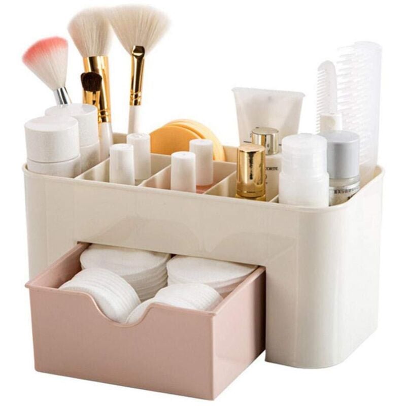 Boîte de Rangement Cosmétique Tiroir, Organisateur Maquillage Étagère de Bureau Rose Grande pour Dortoir Étudiant Maison
