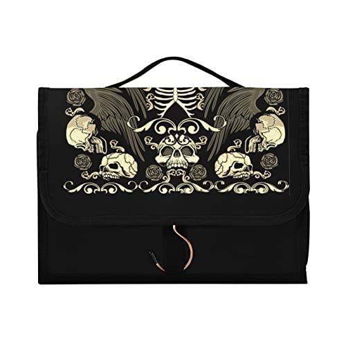 Trousse de toilette vintage à suspendre pour homme et femme, motif tête de mort, trousse de maquillage portable, trousse de maquillage pour sac à main, trousse de voyage étanche, grande trousse de
