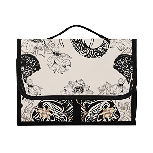 Trousse de toilette à suspendre pour femme et homme - Motif tête de mort et fleur - Trousse de maquillage portable pour sac à main - Imperméable - Essentiels de voyage - Grande trousse de toilette