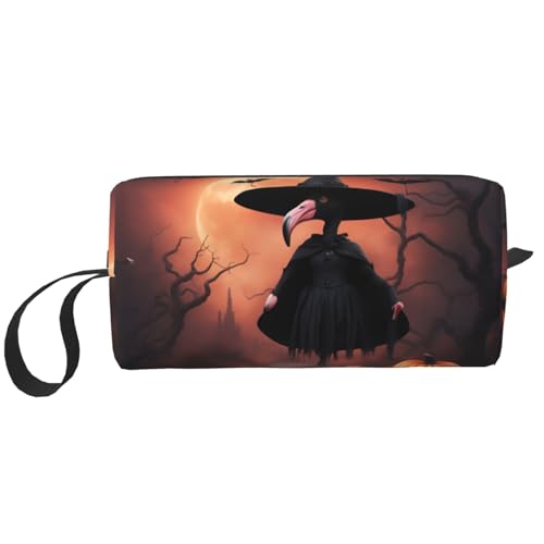 FFCVZAA Halloween flamant rose chapeau de sorcière imprimé mode trousse de maquillage voyage trousse de maquillage école étudiant essentiels trousse de toilette, Noir , Taille unique, Organiseur de