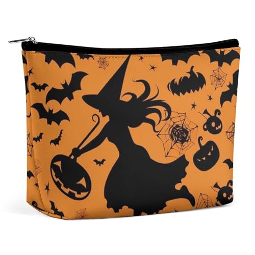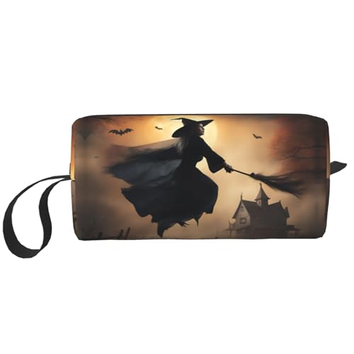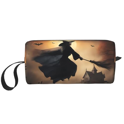 KTNML Trousse de maquillage portable à fermeture éclair pour Halloween, sorcière volante, sac de rangement facile à transporter, trousse de maquillage de voyage pour femme, sorcière d'Halloween