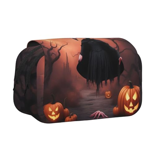LONGZEHAO Trousse à crayons de grande capacité avec fermeture éclair double couche pour Halloween, sorcière volante, maquillage