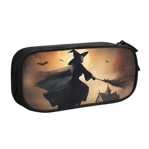 NImongt Trousse à crayons élégante avec imprimé sorcière volante pour Halloween, fournitures scolaires, maquillage, voyage, bureau, classe, Noir , Taille unique, Organiseur de sac