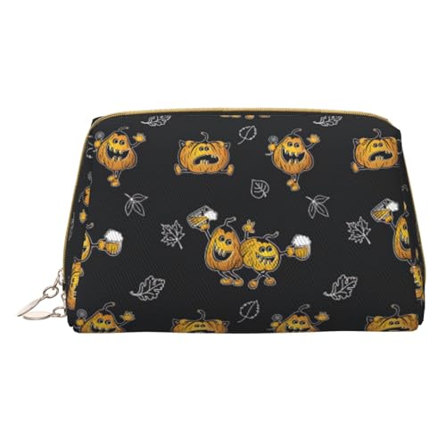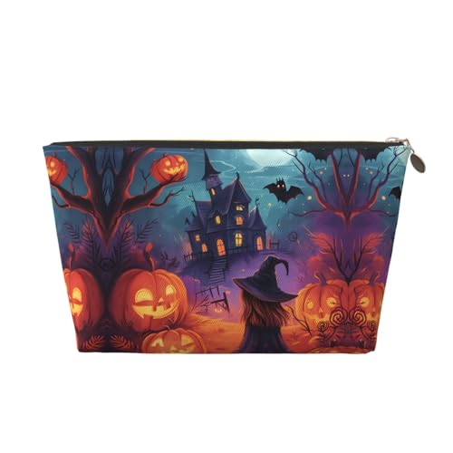 VOSERY Trousse de maquillage en cuir, trousse de toilette de voyage pour femme, trousse de maquillage pour Halloween, citrouille, château, sorcière, trousse de maquillage mignonne, trousse de