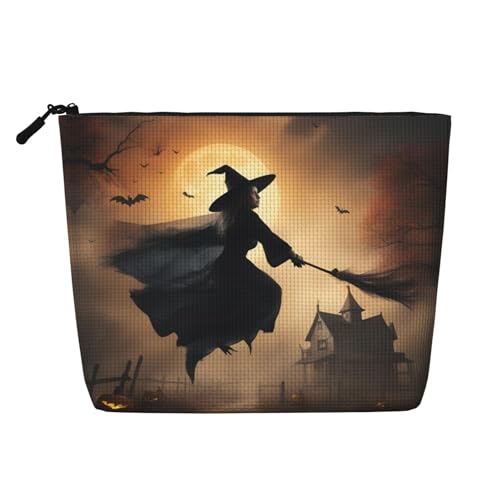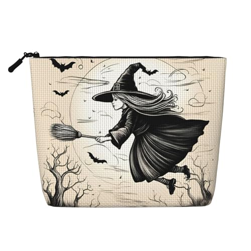 FFCVZAA Halloween Sorcière Impression Volante Trousse à crayons à la mode Voyage Trousse de maquillage École Étudiant Essentiels Trousse de toilette, noir, En storlek, Organisateur de sac