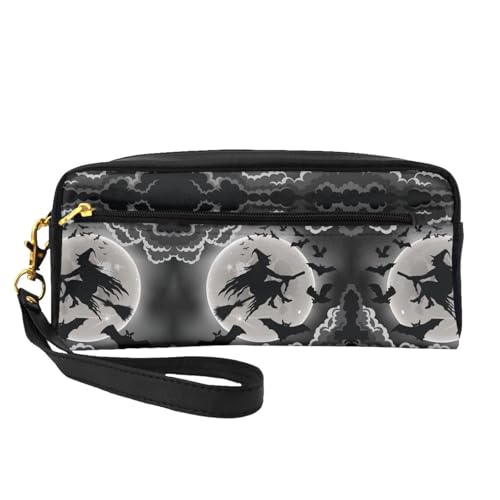 VAPOKF Trousse à crayons en cuir avec motif de sorcière et de chat noir pour Halloween, trousse de maquillage, pour étudiants, papeterie, école, bureau
