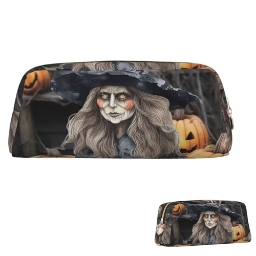 VAPOKF Trousse à crayons en cuir avec chapeau de sorcière et citrouille pour Halloween, porte-monnaie, trousse de maquillage pour étudiants, papeterie, école, bureau