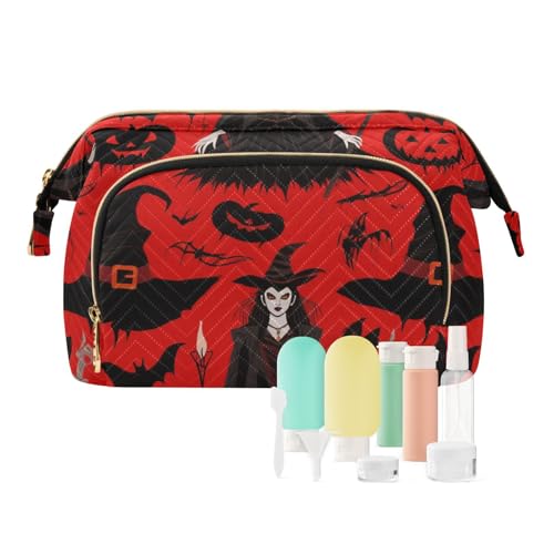 miaozhen Sac de voyage gothique rouge noir Halloween sorcière citrouille pour femme léger pour femmes portefeuille pour cartes organiseurs d'argent pour maquillage, Citrouille sorcière d'Halloween