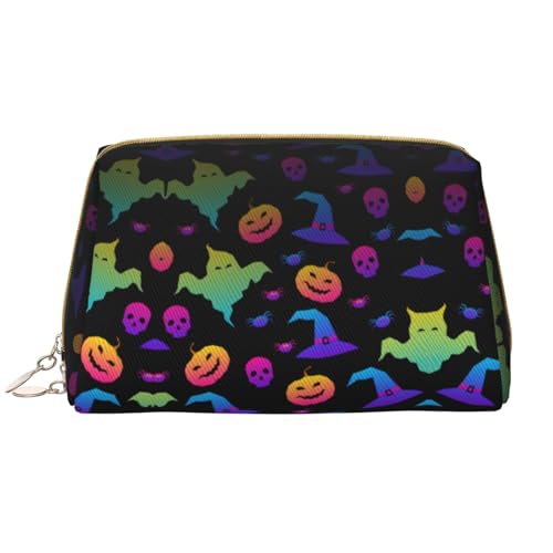 Rainbow Halloween Fantôme Sorcière Chapeau Araignées Sac de Maquillage Portable en Cuir Fermeture Éclair Sac de Rangement Portable Rouge à Lèvres Trousse de Toilette, blanc, Taille unique