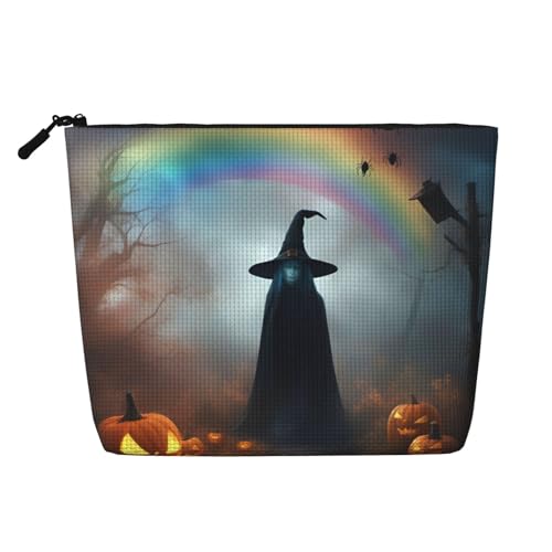 WenDang Sac de papeterie multifonctionnel arc-en-ciel pour Halloween, fantôme, chapeau de sorcière, araignées, convient pour les voyages, les fournitures de bureau, le maquillage et l'organisation de