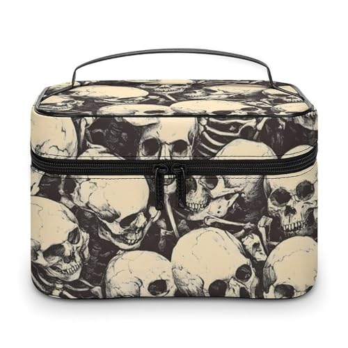 Nevjipu Grande trousse de maquillage de voyage en cuir – Trousse de toilette de voyage rétro avec motif tête de mort (A) pour femme, trousse de maquillage pour soins de la peau des ongles avec