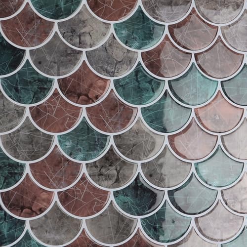 CRE8TIVE 16 Pièces Carrelage Adhesif Mural Cuisine Forme d'Éventail Credence Adhesive pour Cuisine Imperméable Brun Marbre Carrelage Adhesif Mural Salle de Bain Buanderie Cheminee 30.5cm x 30.5cm