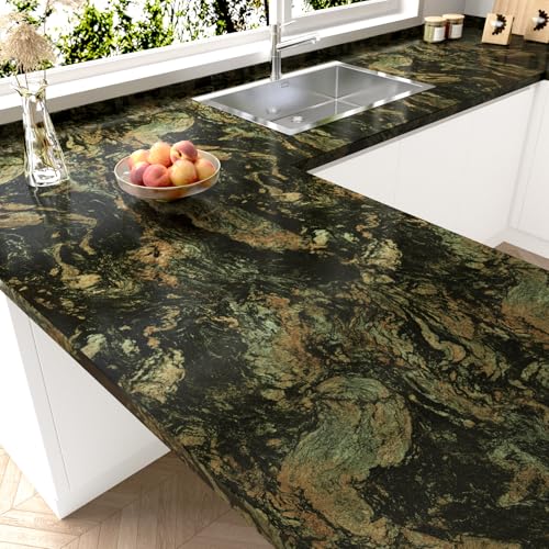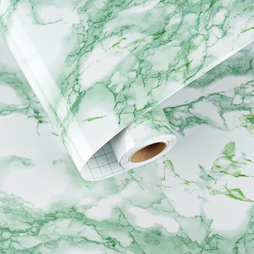 HotDecor Papier Peint Marbre Vert Film Adhesif Pour Meuble Rouleau Vinyle Adhésif Plan De Travail Cuisine Revetement Adhesif Meuble Papier Peint Autocollant Mural Marbre Vert 40 x 200cm