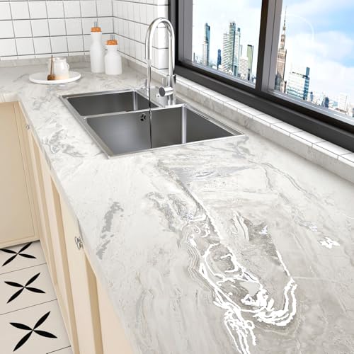 Livelynine Papier Adhesif pour Meuble Cuisine Gris 40CMx10M Revetement Plan de Travail Cuisine Marbre Gris Vinyle Adhesif Meuble Marbre Film Adhésif pour Salle de Bain Placards Credence Cuisines