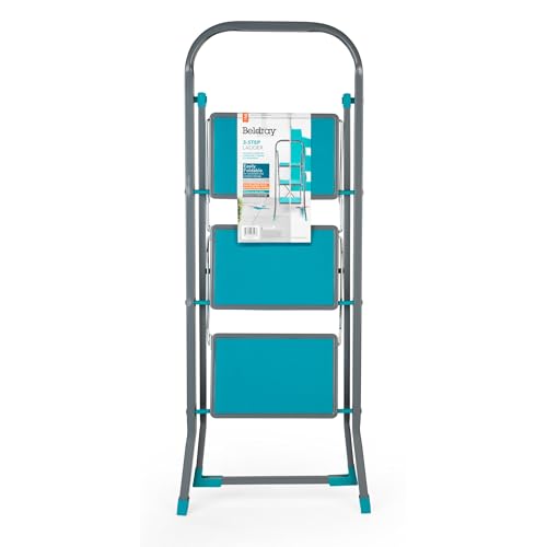 Beldray LA024510TQEU Escabeau Pliable à 3 Marches, Robuste Marchepieds Pliant de Bricolage, pour Intérieur/Extérieur, Max capacité 150 kg, 105 cm, Turquoise/Gris