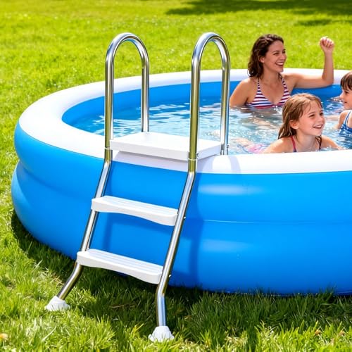 Échelle de Piscine - DUOKU - 4 Marches - Antidérapantes - Pour Piscines Creusées et Hors Sol - Taupe