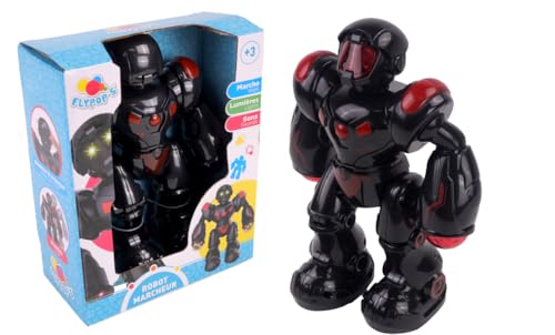 FLYPOP'S - Robot Marcheur - Jouet Électronique - 088357 - Noir - Piles Non Incluses - Jouet Enfant - Lumineux - Sonore - Cadeau - Anniversaire - À Partir de 3 Ans