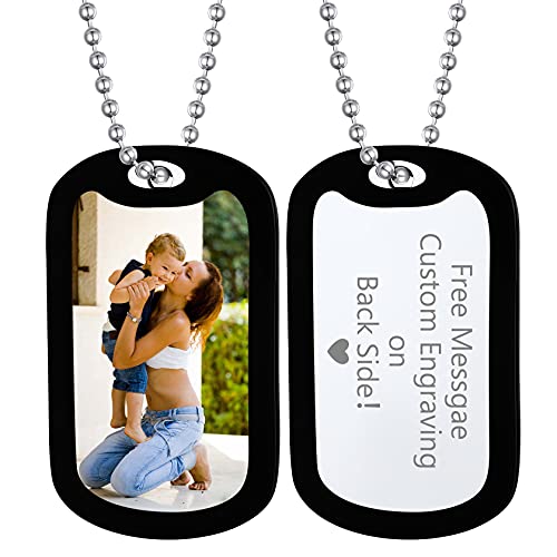Collier Photo Gravé Pendentif Homme Prénom Personnalisé Chaine Femme Spiga Argent 925 Plaque Militaire Texte Gravure Acier Dog Tag Argenté Bijoux Cadeau Noël Grâce Valentin Mariage Fêtes Mères Pères