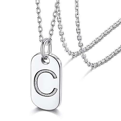Collier Femme Argent 925 Plaque Militaire A-Z Prenom Personnalisé Lettre Initial Chaine Fille Personnalisable Réglable Pendentif Alphabet C-Bijoux Cadeau Anniversaire Mariage Saint Valentin Noël