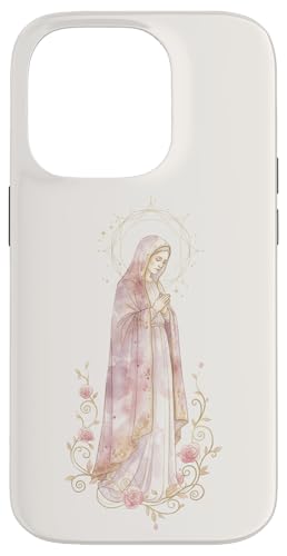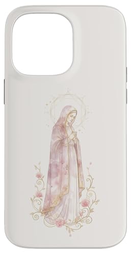Prière catholique Florale de la Vierge Marie Rose Coque pour iPhone 14 Pro