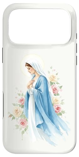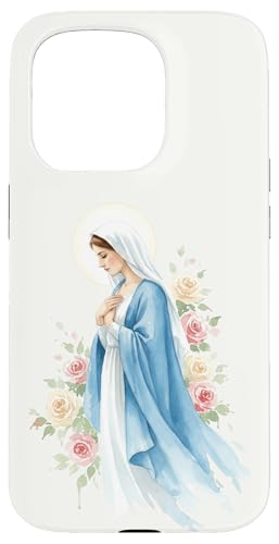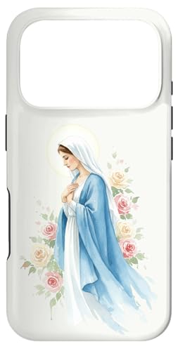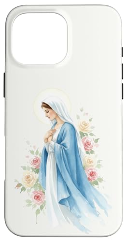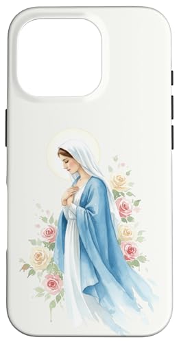 Prière catholique Vierge Marie Rose Bleu Coque pour iPhone 16 Pro