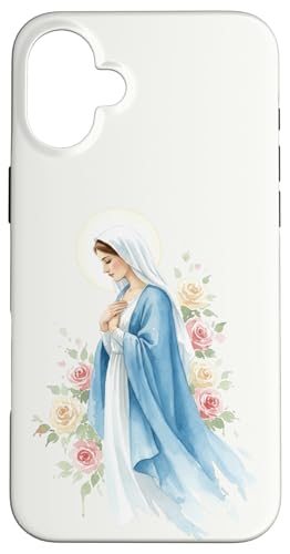Prière catholique Vierge Marie Rose Bleu Coque pour iPhone 16 Plus