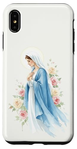 Prière catholique Vierge Marie Rose Bleu Coque pour iPhone XS Max