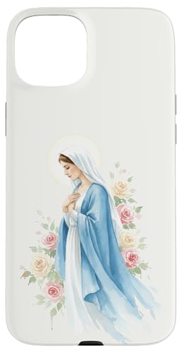 Prière catholique Vierge Marie Rose Bleu Coque pour iPhone 15 Plus